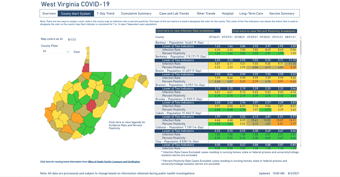 West Virginia Dhhr Reports 3 New Covid 19 Related Deaths Second County Moves To Red On Alert Map Wv News Wvnews Com